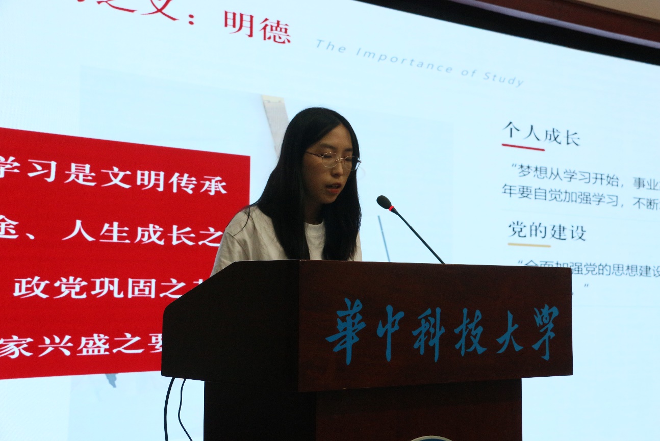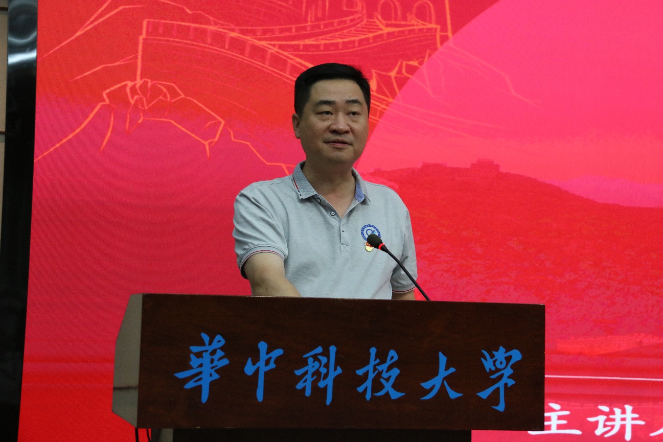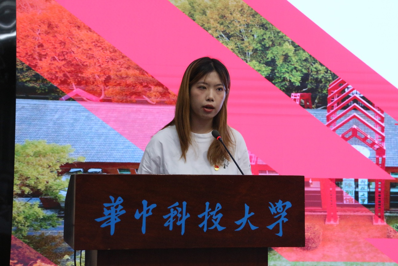 优秀党员代表分享后,戴则健进行总结发言。他希望毕业生党员们今后在工作上要有不懈的追求,做好当前的事,不急功近利。在未来的道路上,华科大学子应该谨遵校训“明德厚学,求是创新”,“明德”要放在第一位,“厚学”即终生学习,“求是”是核心,“创新”是永远。
