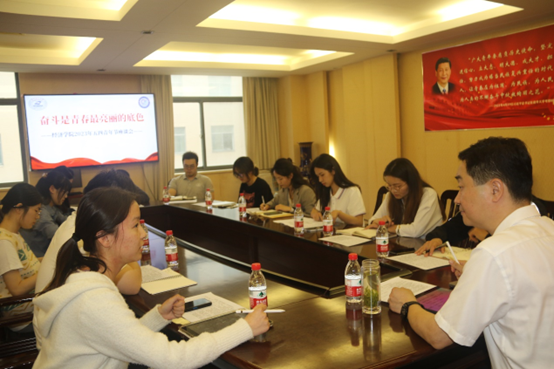 在交流讨论环节,戴书记同大家亲切交谈,并对大家提出的问题一一进行解答,最后,他向大家提出三点希望:一是“眼睛里要有活”,对待学习工作任务,能够提前主动进行谋划做好准备,做到今日事今日毕;二是“头脑中要想事”,要学深悟透党的二十大报告,读原著、学原文、悟原理,了解把握国家发展方向,进而为之付出努力;三是“手里还能成事”,要不断学习积累,在看到问题、想出思路后最终办成事,希望大家能够踔厉奋发、笃行不怠,在新时代新征程中留下青春奋斗的鲜明印记。