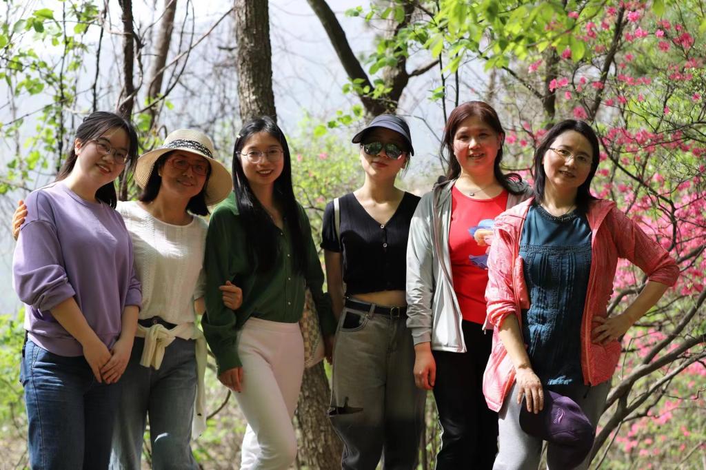 四月是天马寨最美丽的季节,五彩杜鹃沿着最高海拔接近1100米的高度梯次盛开。在漫长的爬山旅途中,老师们行进速度不一,自发形成好几组,老师们有说有笑,一边欣赏沿途美景,一边相互合影留恋,在阳光灿烂的天马寨留下了经院教职工的美丽身影。