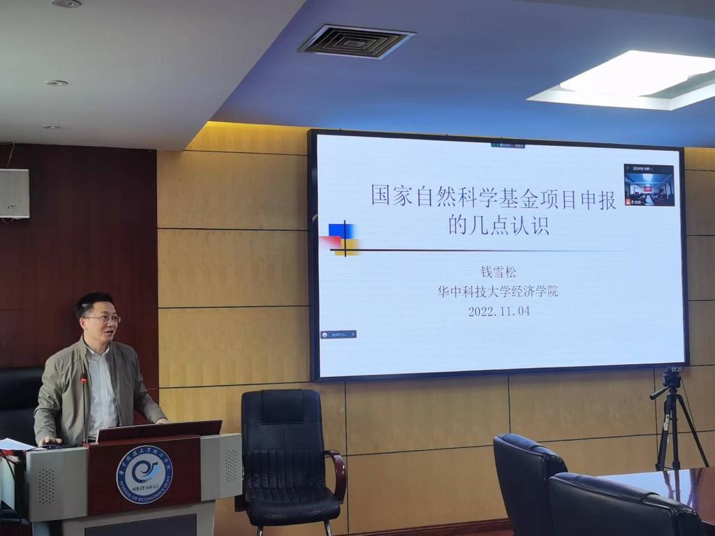 会议伊始,钱雪松开展了题为《国家自然科学基金项目申报的几点认识》的分享。钱老师指出申报基金项目是个人学习成长的过程,将有助于打造研究活动的组织性、研究过程的自主性、研究成果的丰富性;指出选题的关键在于问题导向、视角新颖与特色鲜明、以小见大、以学术积累作基础;并针对申请书撰写需要注意的问题提出了自己的建议。最后,钱老师强调了申报项目与做研究(写论文)之间的关系,以及申报基金项目对个人学术的良性循环、学科环境的氛围打造的重要性。