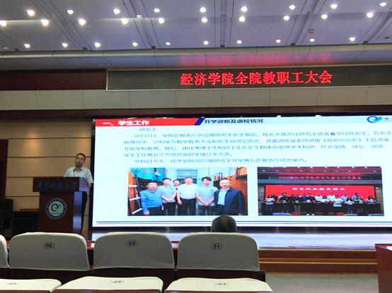 钱雪松副经理报告了新学期本科教学工作,重点是:坚持全面推进课程思政建设,深化课程思政改革;持续推进国家和省级一流专业建设工作;抢占数字经济人才培养赛道,加快推进数字经济专业建设。他还传达了本科生院新学期“公司教学事故通报”。