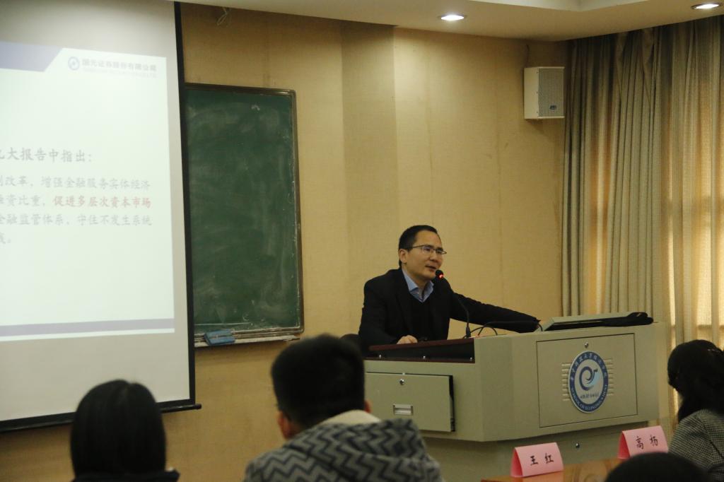 (通讯员宋楷)2021年12月4日下午,金融市场发展前沿系列讲座第四十九期讲座在永利3044noc103教室顺利举行。本次讲座邀请到国元证券总裁助理、投资银行总部总经理王晨先生担任主讲嘉宾,他以“多层次资本市场体系及注册制改革概述”为主题进行了精彩演讲。永利3044noc金融学系助理教授高杨老师担任本场点评嘉宾。
