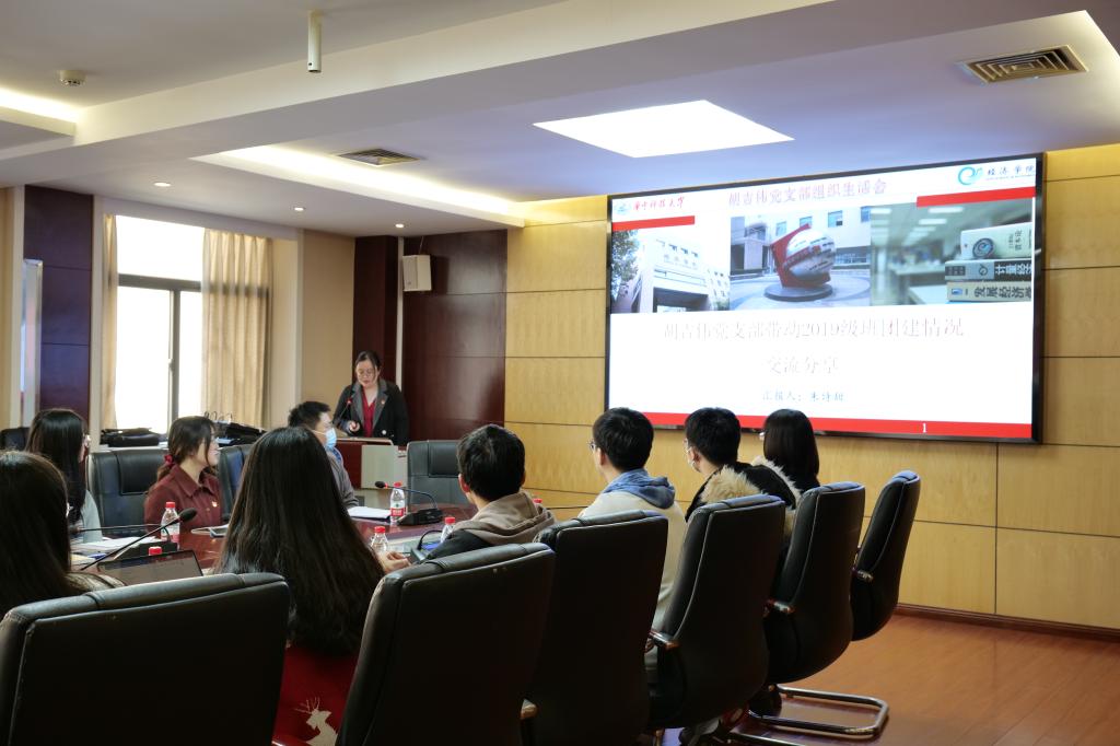 支部书记朱诗甜首先介绍了胡吉伟党支部的基本情况,并就胡吉伟党支部带动本科2019级各班级建设工作进行了阶段性总结。