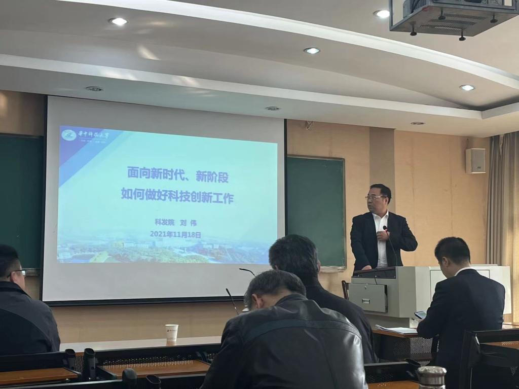 会议伊始,刘伟对自科基金进行了申报动员和政策宣讲介绍。报告从高校科技创新发展现状、国家自科基金申报政策解读、青年科研人员如何快速成长和发展、恪守科研诚信,珍惜学术声誉这四个方面进行展开。他提出,院系在申报基金时要提前布局,早做准备。同时,院系要积极动员,要对新进的科研人员开展辅导培训,加强对重点项目的组织培育。科研人员要尽早的确定选题方向,总结凝练关键科学问题,反复锤炼提升整体质量,要在底子、点子、本子三个方面不断提升。他强调,青年老师在发展过程中,首先要找准研究方向,时刻牢记研究是否瞄准国际学术前沿,是否对接国家发展战略和经济社会发展的需要,是否围绕行业和学科发展的需要。最后祝愿各位教师科研项目申报取得成功。
