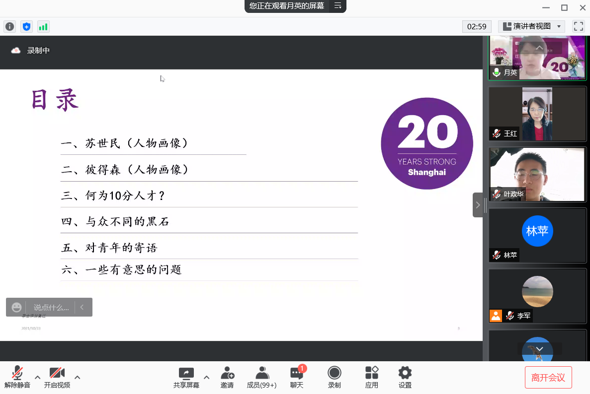 在介绍完两位“资本之王”的人物特点与品质后,董月英播放了一个苏世民的采访视频“您认为什么样的人是10分的人才?”。理想中的人才聪明且有求知欲,在遇到压力的时候仍能保持镇定自若,具有无限的可能性。这是黑石选择人才的标准,也可以给青年人们得以借鉴。