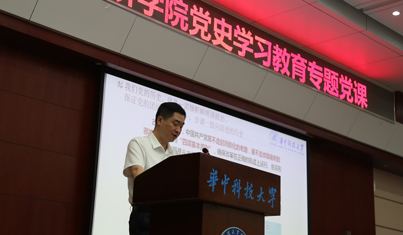 党课最后,戴则健展望了华中大未来的美好前景及面临的重大挑战,并鼓励同学们将党史学习与校史、院史学习研究结合起来,学史明理,学史聚力,努力学习,积极储备知识,不断提升综合素养,努力成长为勇担民族复兴大任的时代新人。