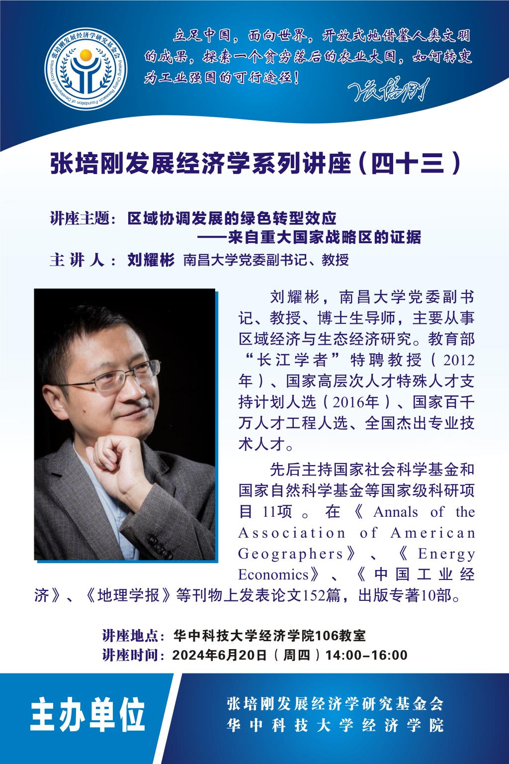 讲座题目:区域协调发展的绿色转型效应——来自重大国家战略区的证据