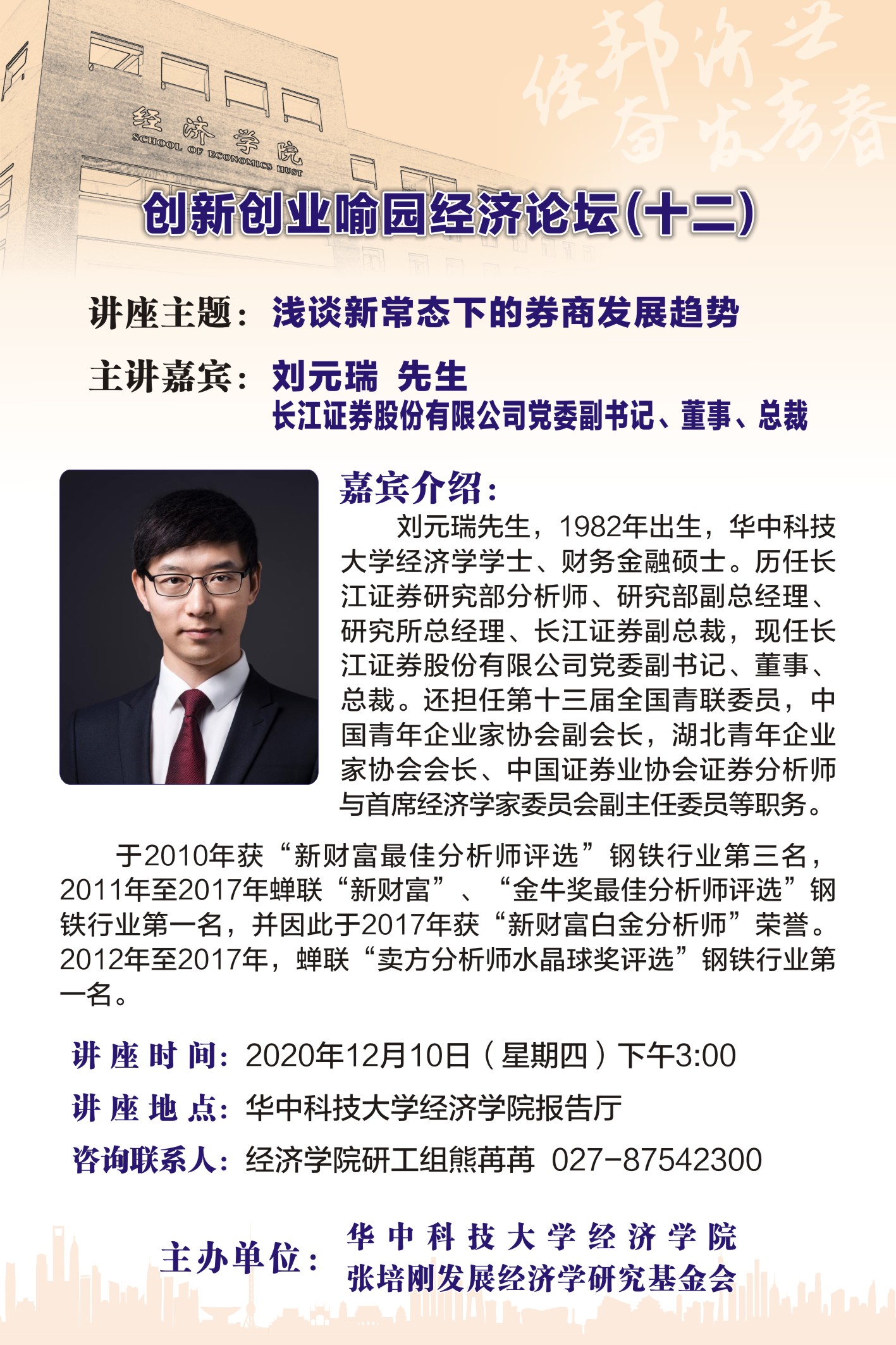 讲座主题:浅谈新常态下的券商发展趋势