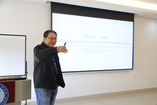 张健教授以《Beyond Financials: A Machine Learning Approach to Predict Earnings Changes》为题进行了论文汇报。研究创新性地构建了一个融合九种算法的集成学习模型,并引入中国特色的政策文本分析变量,实证表明该模型在盈利预测中显著优于传统方法。在讨论环节,针对模型内部权重分配的询问,张教授指出集成模型具有“黑箱”特性,目前只能从预测结果上验证其整体优越性。与会学者建议后续可深入探索其经济机制与可解释性,为机器学习在金融领域的应用提供更坚实的理论支撑。