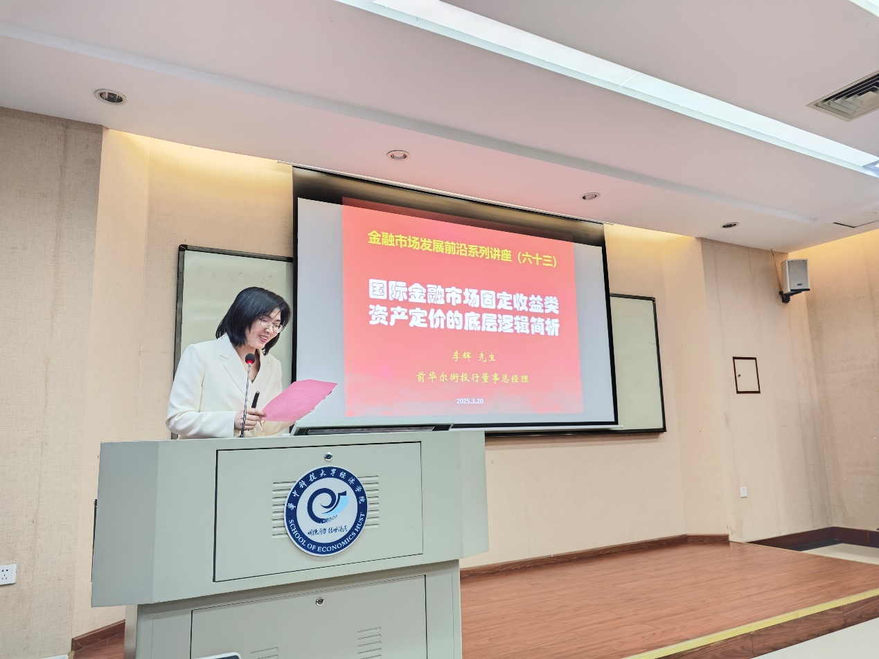 (通讯员:王媛琪 王倩倩)2025年3月20日18:30,金融市场发展前沿系列讲座(六十三)在永利3044noc106教室举办。本次讲座邀请了前华尔街投行董事总经理李辉进行分享。他结合多年在金融业和学术研究的经验结论,围绕国际金融市场固定收益类资产定价的底层逻辑展开主题演讲。本次讲座由永利3044noc沈淑琳副教授主持,永利3044noc现代经济学研究中心主任、张培刚发展经济学基金会理事欧阳红兵教授点评。