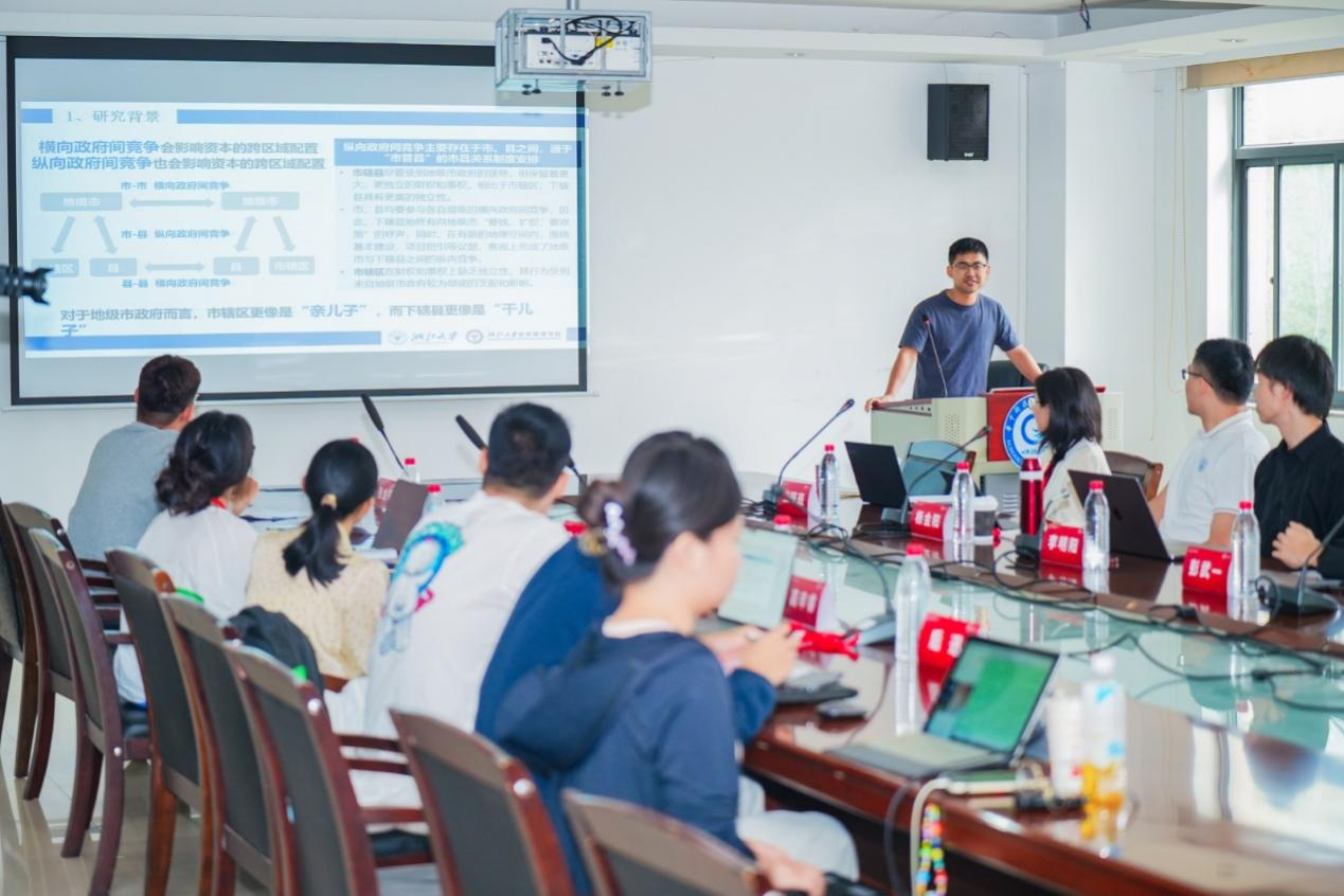 高辛睿以《地方政府竞争是否影响全要素生产率的增长?——基于265个地级市的实证分析》为主题进行报告。他指出,过去依赖资源投入的经济增长模式面临挑战,现在需要推动高质量发展,构建统一规范、竞争有序的大市场。他的研究基于265个地级市的实证数据,旨在探讨地方政府间的竞争如何影响生产率的增长。研究建议地方政府竞争应依法规范,政府官员的考核和地方政府的业绩评估,应该建立一个多维度的评价体系,这样不仅关注经济增长,也注重社会和谐、可持续发展和内外协调。