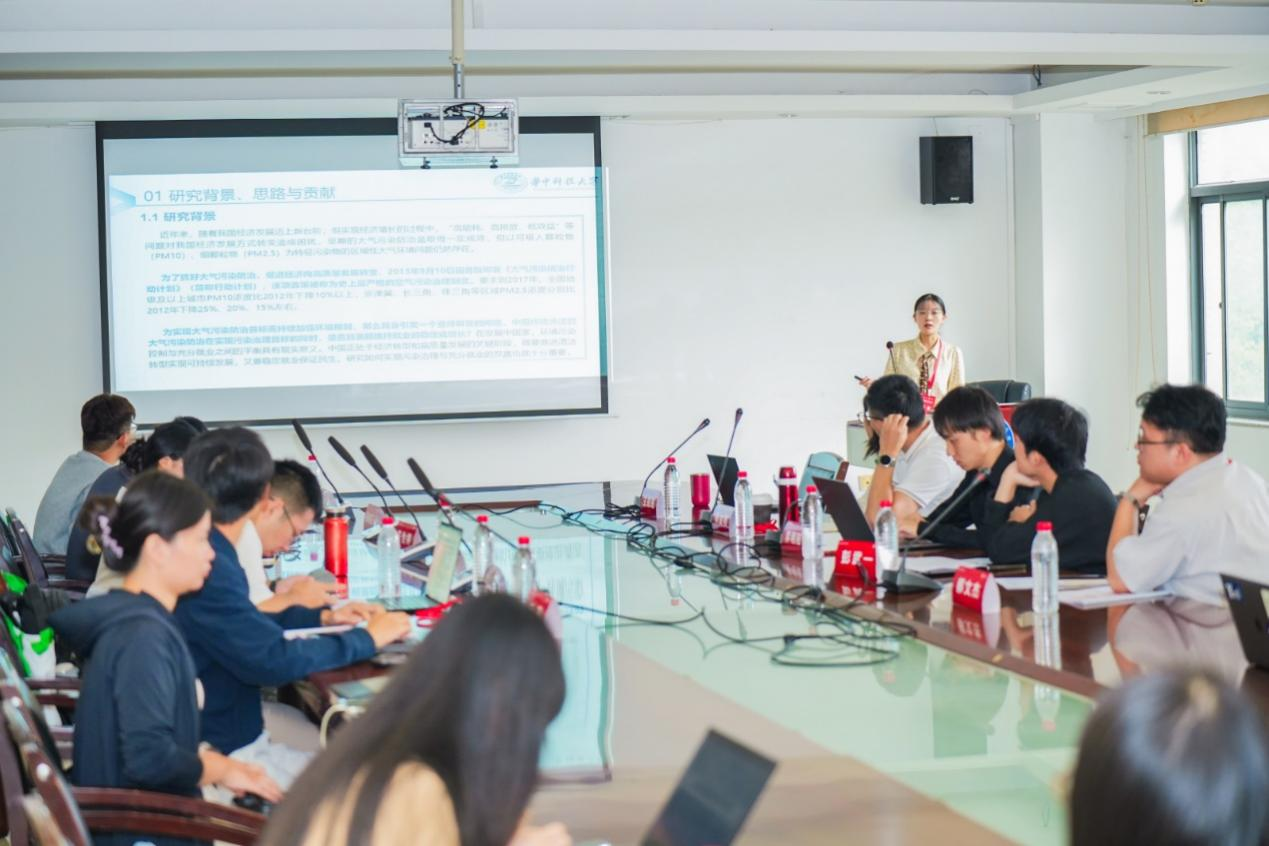 郝文杰以《地方政府债务体制改革能产生减排效应吗?》为主题进行报告。在中国,推动绿色转型和污染治理离不开有为政府建立的激励与约束机制。该报告本文采用事前与事后的相对变动值来测度地方政府债务治理,研究结果表明地方政府债务体制改革的“开前门”和“堵后门”手段均能有效降低地区的碳排放强度。这需要继续完善政府专项债举债体制,创新地方债务管理机制,将资金引导至产业升级、技术进步和绿色创新领域,地方政府在积极实施经济职能的过程中应主动将资金优先配给至新质生产力的培育和发展中。