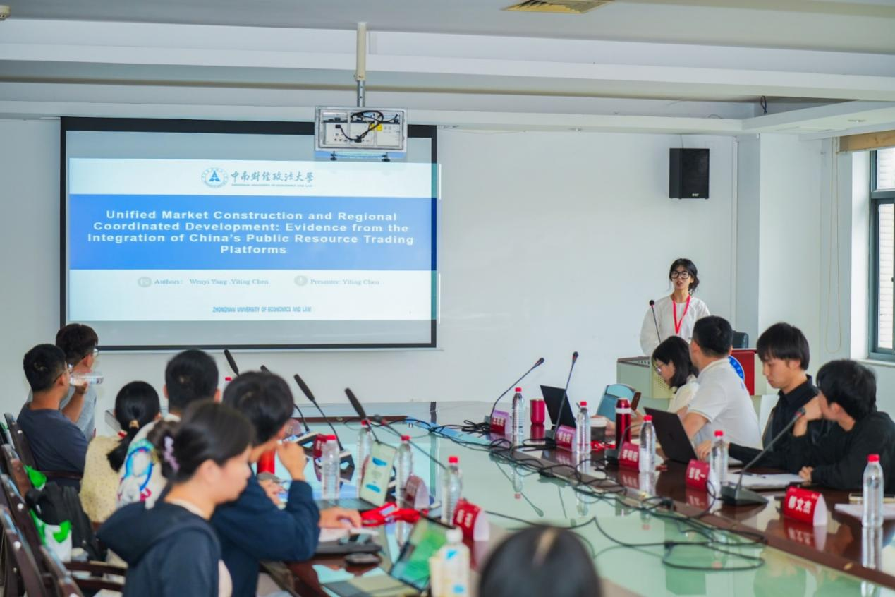 陈怡婷以《Unified market construction and regional coordinated development: evidence from the integration of China' s public resource trading platforms》为主题进行报告。她认为,公共资源交易平台应该整合,不仅是中国全国统一大市场建设的重要组成部分,同时也是落实区域协调发展战略,以及实现共同富裕的重要举措。研究从居民的福利,地区发展质量和地区发展总量三个层面进行考察,结果显示,在公共资源平台交易平台的整合情况下,流动性较强的商品类交易,采用公平竞争的交易方式,以及作为投标方的交易主体身份改善,能够有助于缩小我国地区发展的差距。
