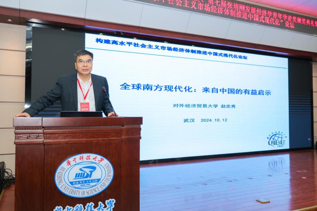 赵忠秀以《全球南方现代化:来自中国的有益启示》为题进行报告。他基于中国的发展经验,提炼出对全球南方国家有教育意义的学理认识,强调了中国式现代化对全球南方国家的重要意义。他从四方面进行了阐述:首先是全球南方国家在国际贸易和投资规则制定中的参与,强调了中国开放实践的重要性和对全球治理规则体系的改革完善。其次是维护多边体制的必要性,中国通过改革开放融入全球价值链,为全球发展带来机遇。第三是绿色低碳现代化的重要性,中国绿色发展道路为世界提供了启示。第四,中国经验的启示,包括改革开放与国际化的坚定共识,以及激励相容的经济增长范式。最后他强调了中国在推动国际发展合作中的作用,以及为全球南方国家提供现代化路径选择的重要性。