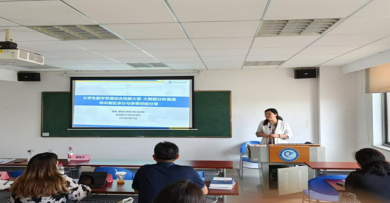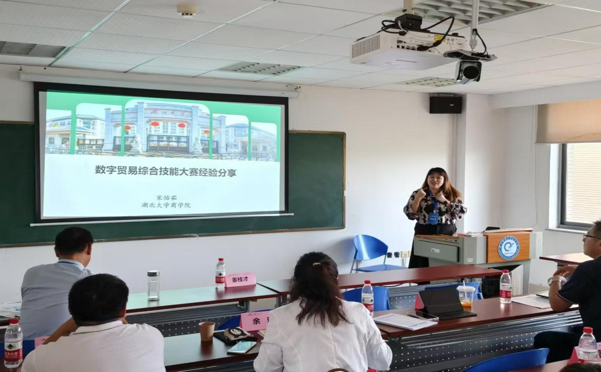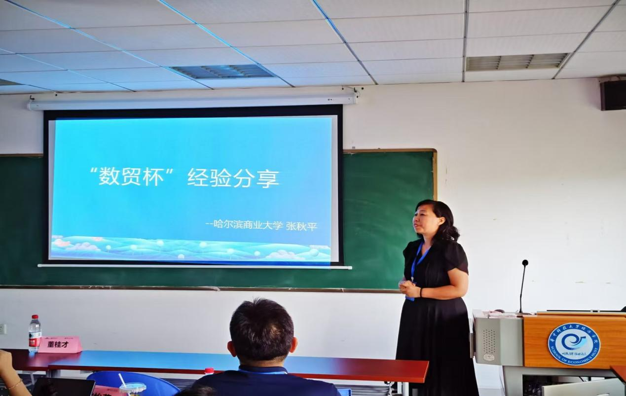 张秋平副教授以《数贸杯经验分享》展开演讲。她从深入研究,赛事宣讲,员工组队,选择题目,逐一指导,校内筛选,赛前彩排,共同协调几个方面展开经验交流。她强调了在赛事中,应当加强赛事宣传工作,引导员工参与,加强团队协作,注重员工安全,为老员工数字贸易综合能力大赛的开展提出了建议。