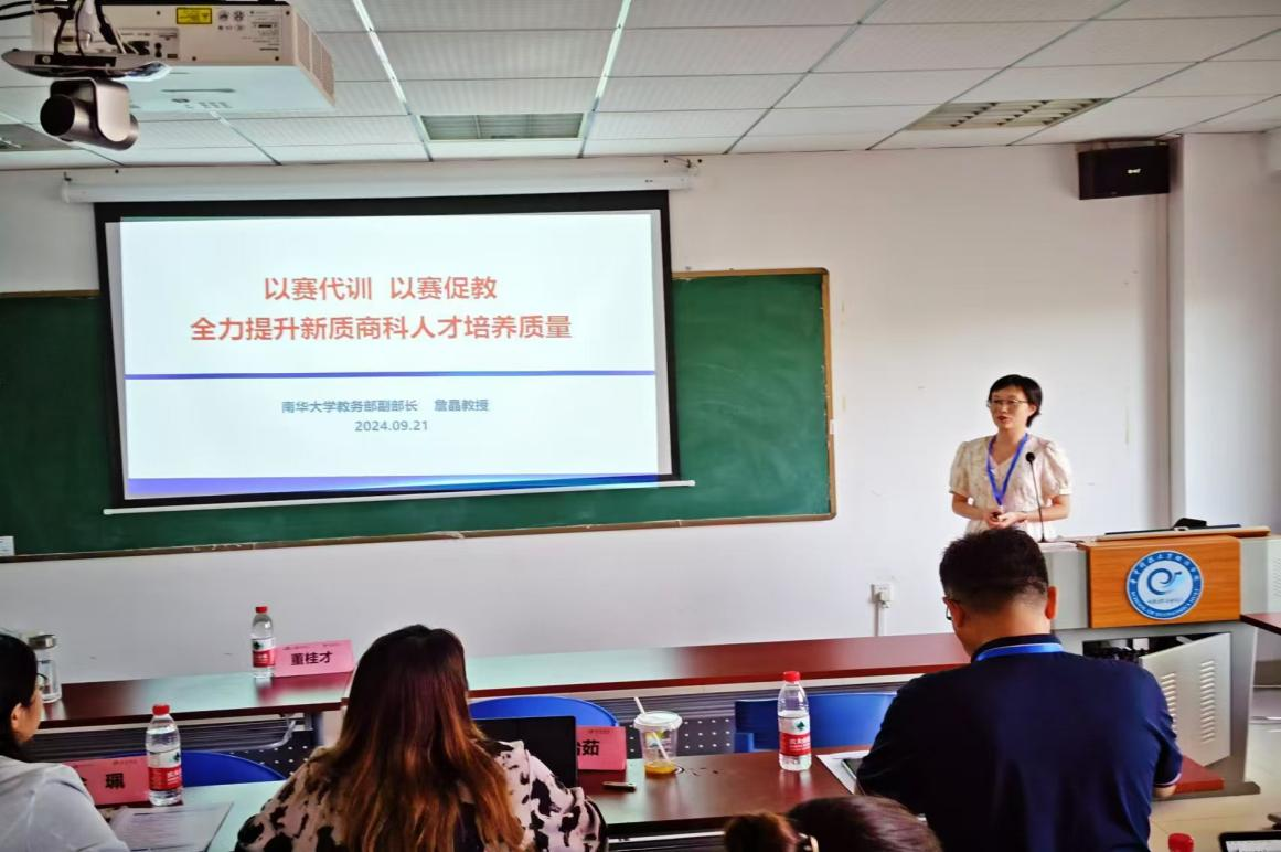 詹晶教授以《以赛代训,以赛促教-全力提升新质商科人才培养质量》为题展开演讲。她从参赛动员工作,参赛准备工作,困难与思考三个方面展开,提出了公司高度重视,鼓励教师培训,搭建师生交流平台,督促员工参加线上培训,学习其他大赛经验等多种提升新质商科人才培养质量的方法。最后,她从当下大赛举办的困难提出了几点建议,为解决当下大赛的困难提出了一些解决方案。