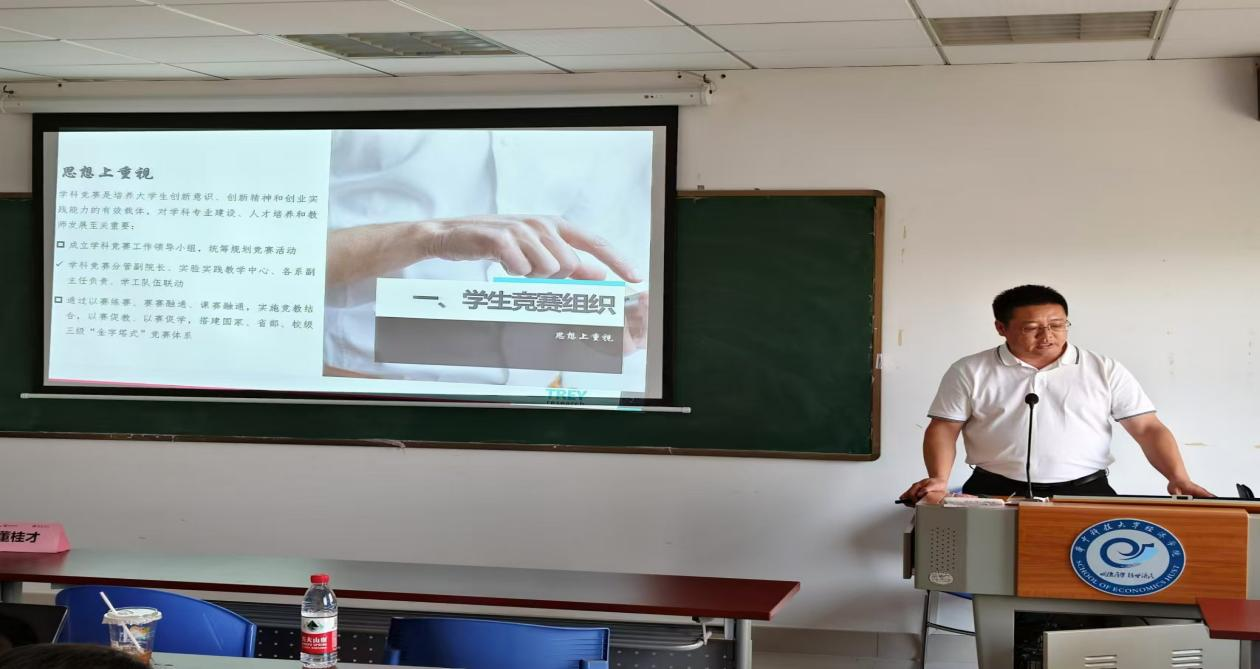 乔长涛教授以《学科竞赛组织的几点感悟》为题展开主题演讲。他指出,学科竞赛是培养老员工创新意识,创新精神和创业实践能力的有效载体,对学科专业建设,人才培养和教师发展至关重要。因此在学科竞赛的组织中应当思想上重视,行动上落实。在承办赛事时,他强调应该重视联络对接,加强组织领导,完善资源准备,做好宣传工作,强化沟通协调。