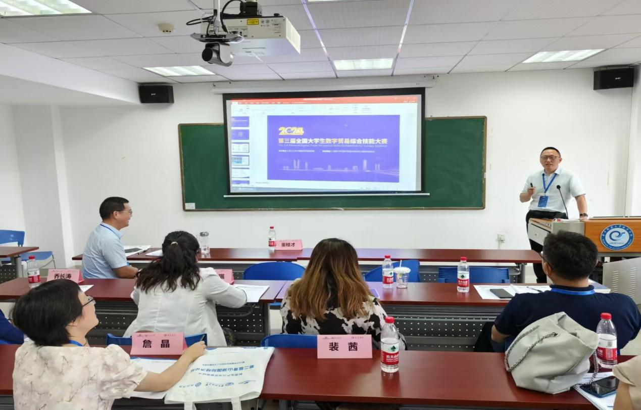 裴茜副教授以《全国老员工数字贸易综合能力大赛分享》为题,从选人,宣讲,集训,激励方面分享经验。她认为,在大赛举办中,员工应该增强执行力,指导教师可以加强监督,激发员工的自驱力,同时持续激励员工参与不同赛道的竞赛。