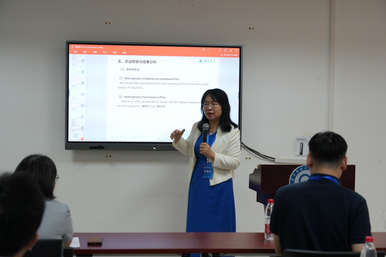 喻春娇教授以《RTAs and the GVC Resilience: Evidence from the Asia-Pacific Region》为主题进行报告,揭示了区域贸易协定(RTAs)在亚太地区全球价值链(GVC)韧性提升中的关键作用。报告指出,RTAs的签署和深化显著增强了亚太价值链的稳定性和安全性。研究表明,诸边RTAs和包含“WTO-X”条款的RTAs在促进价值链韧性方面尤为有效。此外,报告强调了东亚地区RTA深化的特殊贡献,以及在不同经济发展水平和政治关系背景下RTAs影响的异质性。报告建议,亚太地区应加强RTA网络建设,优先与经济发展水平相近的伙伴进行谈判,并提升国内制度质量,以进一步增强区域价值链的韧性。