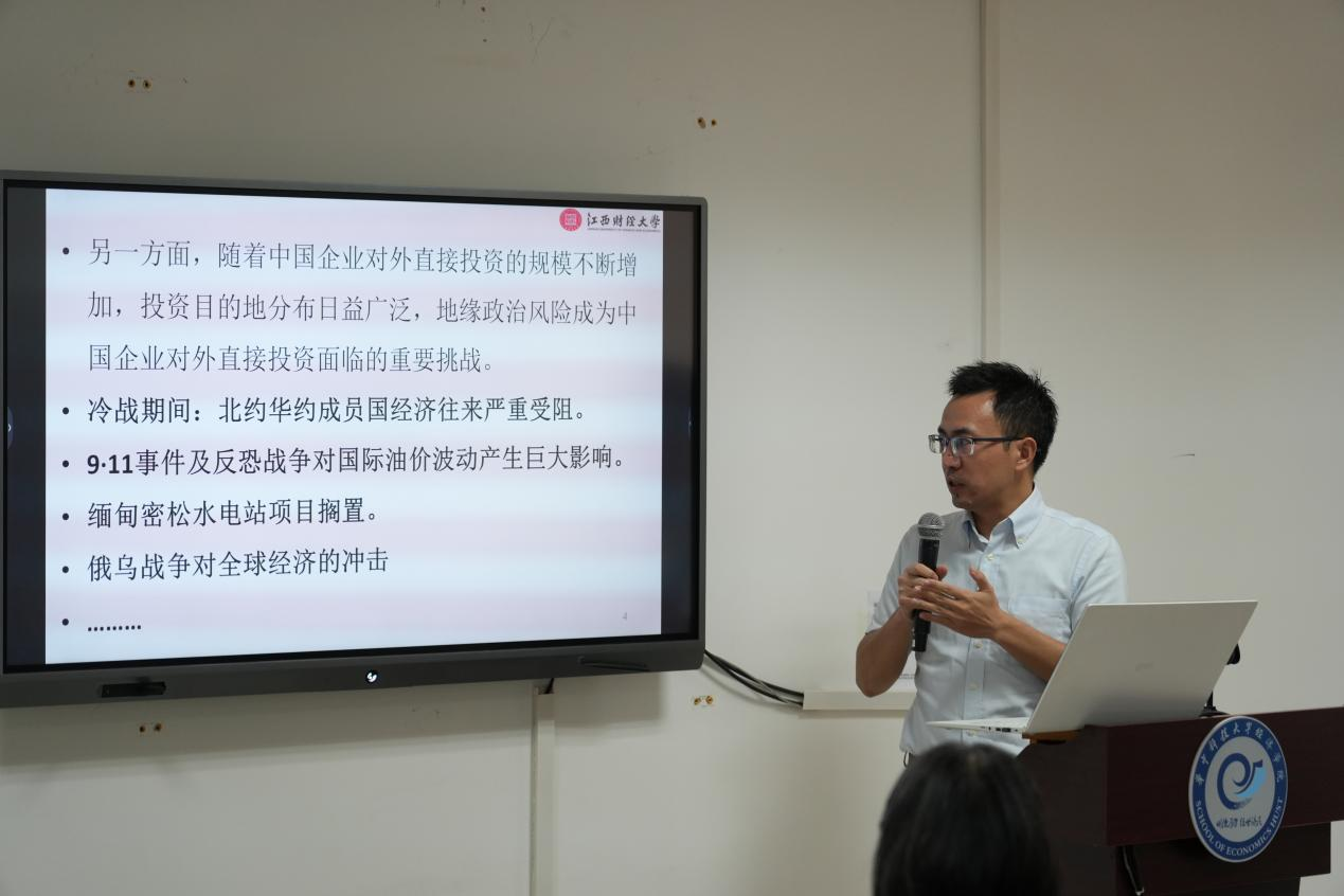 陈哲副教授以《地缘政治风险对我国企业海外投资的影响》为主题进行报告。报告深入探讨了地缘政治风险因素如何影响企业海外投资的决策和效果。报告指出,在全球化背景下,地缘政治的不稳定性和复杂性对企业海外投资构成了显著挑战。通过对多个案例的分析,报告揭示了政治风险、经济制裁和市场准入限制等因素对海外投资活动的具体影响。企业在制定海外投资策略时,应充分评估地缘政治风险,并采取适当的风险管理和缓解措施。同时,报告也强调了政府在提供政策支持和风险预警方面的重要性,以帮助企业更好地应对国际市场的不确定性。