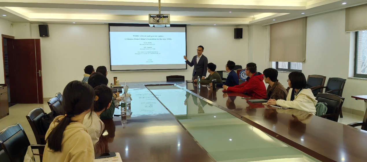本网讯(通讯员:詹巧旭)3月22日下午,发展经济学研讨会2024年第5期(总第104期)在永利3044noc405会议室顺利举行,来自北京师范大学珠海校区人文和社会科学高等研究院的方胜副教授与永利3044noc师生分享了题为《国退民进:来自20世纪90年代后期中国转型的证据》的学术报告,公司副经理钱雪松、公司教师杜立、郑冯忆、赖烽辉等以及众多硕士与博士研究生参与本次会议。本次研讨会由杜立主持,由钱雪松作总结发言。