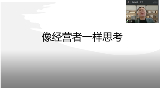 王干一总经理分享了企业运营管理的实践感悟,对比分析风险预测者与问题解决者、经营者思维与打工者思维两两之间的异同点,紧接着对企业战略制定与市场分析进行讲解,最后围绕个人定位和职业选择等内容展开介绍。