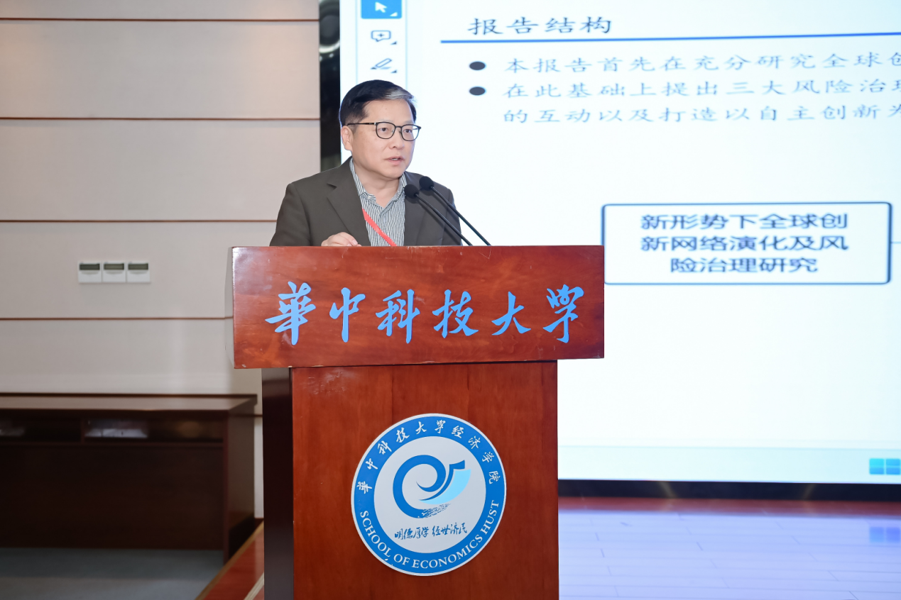 宋敏以《新形势下全球创新网络演化及风险治理研究》为主题进行报告。他指出,当前全球专利申请量和授权量整体呈上升趋势,形成了以美国为中心的全球创新网络结构。美国对中国高新技术产业进行打压以及中美贸易摩擦,使得网络紧密程度下降,也使得中国创新地位近年来有所下降。他在报告中全面研判中美经济脱钩的风险,提出三大风险治理措施:全球创新网络内部的多中心互动、全球创新网络与贸易网络的互动以及打造以自主创新为主的技术新格局。