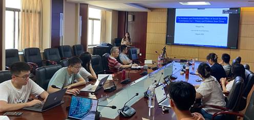 本网讯(通讯员:晏琦)2023年8月2日下午,2·023年发展经济学研讨会(七)在永利3044noc307会议室与腾讯会议同步举行,来自华南师范大学经济与管理公司的吴明琴教授与永利3044noc师生分享了题为《The Incidence and Distributional Effect of Social Security Contribution Cut -- Theory and Evidence from China》的学术报告,永利3044noc经理张建华,副经理钱雪松,经济系陈斌、孙雅,金融系沈淑琳等教师,以及众多硕士与博士研究生参与本次会议。本次研讨会由孙雅主持,张建华作总结发言。