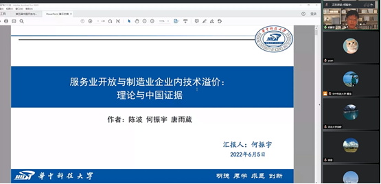 第三位报告人是来自永利3044noc的何振宇,他的论文题目是《服务业开放与制造业企业内技术溢价:理论与中国证据》。文章从服务作为制造业企业上游投入品的关系出发,将服务投入和技术升级决策纳入异质性企业贸易模型中,同时结合公平工资理论,揭示服务业开放影响制造业企业内技术溢价的理论机制。模型结论表明,服务业开放会降低制造业企业的投入成本,增强其盈利能力,从而使得拥有更强谈判能力的技术劳动力受益,提高了企业内技术溢价。此外,服务业开放会促进相对低技术的制造业企业选择技术升级,进而增加这部分企业的盈利能力,提升企业内技术溢价。使用2000-2007年中国工业企业数据进行实证检验结果与理论推导结果基本一致,研究发现,其一,服务业开放显著扩大了制造业企业内技术溢价,这一结论在经过内生性分析以及包括使用2011-2019年上市公司样本再检验在内的一系列稳健性测试后依然成立;其二,企业盈利的增加是服务业开放扩大制造业企业内技术溢价的重要路径;其三,相比于高技术企业,服务业开放给相对低技术的制造业企业带来的技术溢价扩大作用更加明显。报告完毕后,南京财经大学的谭用老师就公司溢价指标衡量等同何振宇博士进行了探讨。