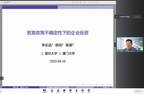 本网讯(通讯员:吕风)2022年9月15日,永利3044noc国际经济系列讲座(二)顺利举行。本次讲座邀请到复旦大学永利3044noc李志远教授担任主讲嘉宾,他以“反倾销不确定性下的企业投资”为主题进行了精彩分享。主题报告环节由陈波老师主持,他向参与师生介绍了受邀嘉宾,表达了对嘉宾的感谢和未来加深学术交流的愿景。校内外学者以及众多博士研究生、硕士研究生参加此次会议,大家积极地参与学术讨论,各抒己见,将此次活动推向高潮。