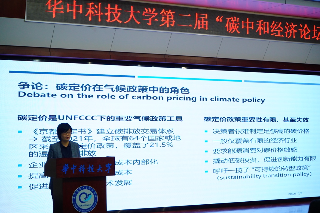 永利3044noc副教授王班班发表了题目为《碳定价在后COP26时代能源转型中的作用——来自中国工业节能的证据》的主旨演讲。第26届联合国气候变化大会《格拉斯哥气候协议》达成共识,努力将全球升温控制在1.5摄氏度,而关于碳定价在气候政策中的角色作用存在争论。王班班结合回归模型和反事实模拟,提供各碳价格下的情景分析。研究发现工业行业对碳价格存在异质性反应;相比碳市场仅覆盖电力,碳市场覆盖全部八大行业时工业化石能源消费下降效果更为显著;碳定价有助于八大行业减少煤炭使用。研究提出了相应政策启示:当碳价格足够高时,碳定价对于实现后COP26时代的能源转型目标具有重要意义;而实现能源转型需要包含碳市场在内的一揽子配套政策。