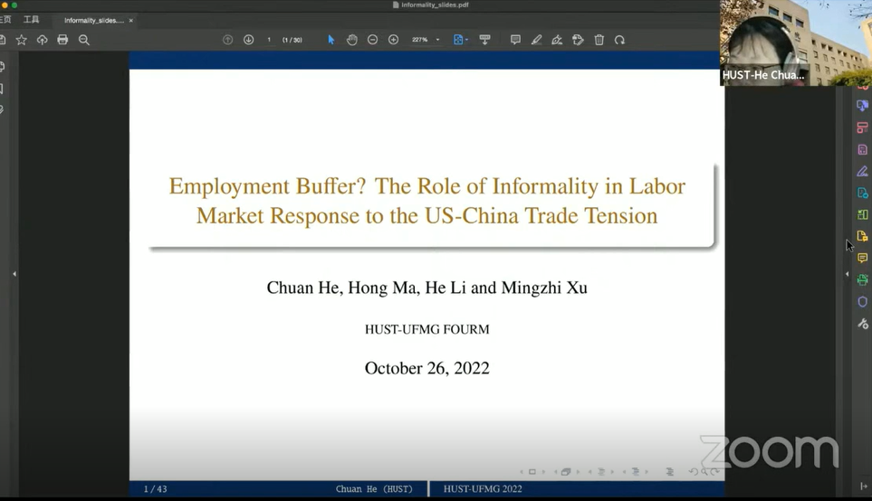 至此,HUST-UFMG国际论坛“国际经济:特质、趋势与挑战”第二场圆满结束。