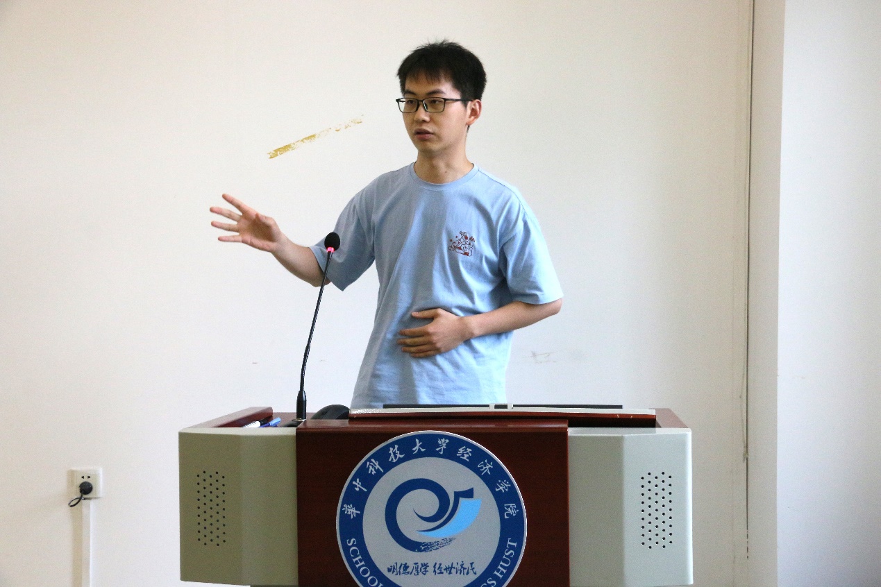 第四位报告人是来自湖南大学的张人中同学,他的论文题目是《促进居民消费结构升级和扩大内需的宏观调控研究》。他认为当前我国居民的消费总量较大,但消费结构尚有待升级和完善。低收入人群和高收入人群面临不同的消费问题。他基于异质性的多部门DSGE模型研究发现:结构性货币政策可以促进高端消费品的生产,为居民消费结构升级提供物质基础,推动高收入家庭的消费结构升级;对高收入家庭适当征税和向低收入家庭的转移支付相结合的财税机制,可以约束高收入家庭的过度高消费和可能出现的铺张浪费,减少政府支出和降低调控成本,促进低收入家庭的消费结构升级;福利分析可以测算宏观政策组合的最优度。因此,他建议实施财政政策和货币政策协调配合的宏观调控机制,从供给端与需求端同时发力,通过精准调控促进我国居民的消费结构升级和扩大内需,推动经济的高质量发展。