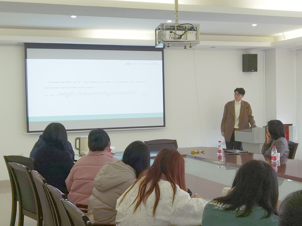 在讲座的整个过程中,现场讨论氛围热烈,不少老师和同学都向李承政老师进行提问并沟通交流。杨金阳老师提出,随着技术的发展和政府对于三农问题的重视,高温天气对于农村收入的影响是否有逐渐减小的趋势?李承政认为这个问题需要基于更长时间的数据进行研究,但是去年中国的旱灾影响依然带来很大的负面影响,可见这个适应过程即使有也是非常缓慢的。杨金阳老师还对文章的异质性分析提出了自己的建议,在中国不同的气候下,高温对农村收入的影响或许会有所不同。此外,周记顺老师针对政策启示部分提出了疑问;陈茜老师从机械化水平和工作时间两个方面提出文章可能需要的补充。最后,几位同学向李承政教授进行请教和学习,讲座圆满结束。
