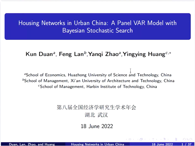 第三位报告人是来自永利3044noc的赵燕齐,她的论文题目是《Housing Networks in Urban China: A Panel VAR Model with Bayesian Stochastic Search》。这篇论文分析了通过城市间信息溢出建立的中国城市住房网络。与传统的基于均值的方法或任意施加的限制不同,这篇论文使用带有贝叶斯随机搜索的面板VAR模型,以数据驱动的方式识别溢出效应。从收益和波动的角度绘制住房溢出路径,通过脉冲响应函数衡量时变溢出幅度。研究结果表明,住房溢出效应不仅存在于各城市之间,而且存在于同一层级内,且后者的溢出效应大于前者。尽管有共同的模式,住房网络在不同的城市群也表现出独特的特征。