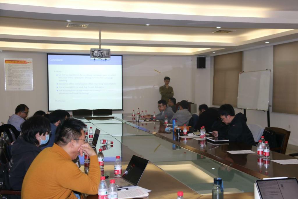 最后一场是由武汉大学经济与管理公司的马子真老师的汇报,他的汇报题目为《All-pay campaign and electoral accountability》。