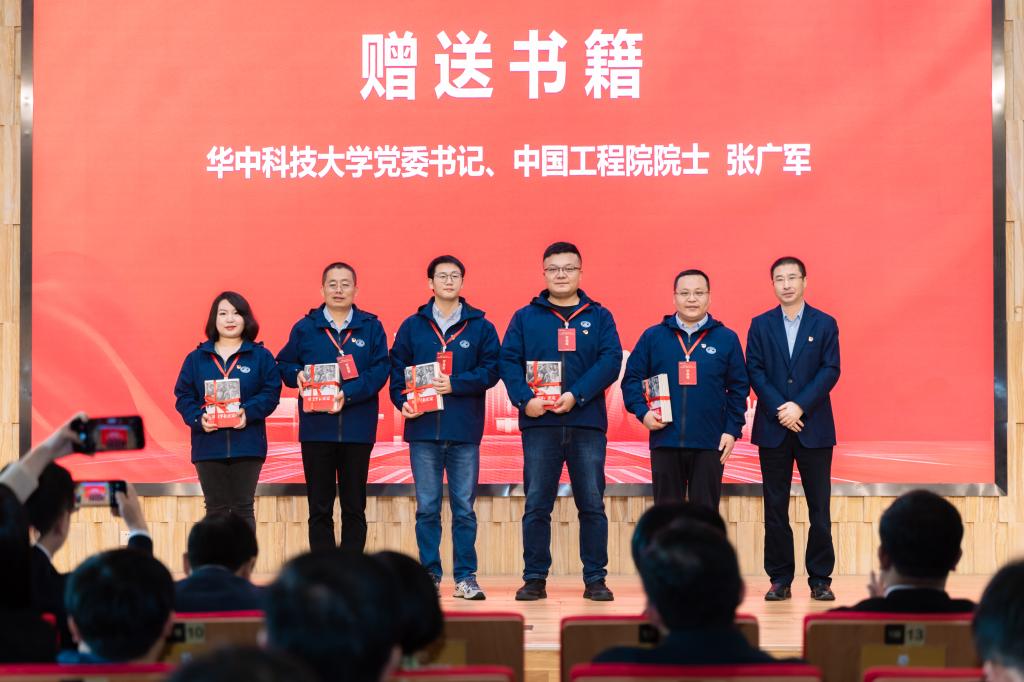 开班仪式上,张广军为学员代表赠送书籍并合影留念。2·012届博士生员工,广西崇左市国资委党委书记、主任史朝阳作为选调生员工代表发言。他代表全体选调生员工,向母校对选调生员工的关心表示感谢。他表示,将以此次培训为契机,不忘初心使命,顽强拼搏,扎根基层,不负时代韶华,不负人民期望。