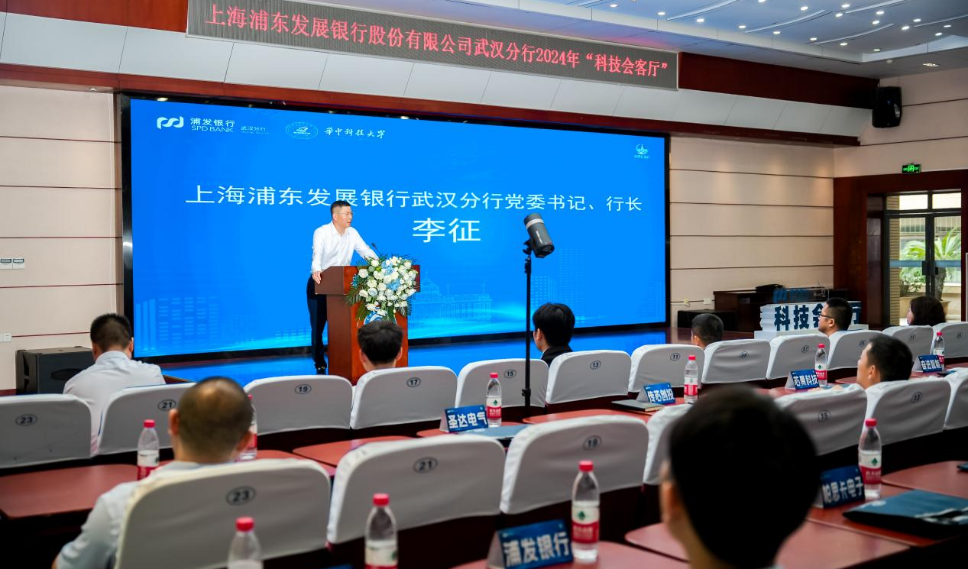 浦发银行武汉分行行长李征发表致辞,并向与会企业介绍了浦发银行武汉分行在科技金融领域的布局和成果,包括在光谷片区设立的4家科技特色支行及其深耕的特色领域。他表示,浦发银行武汉分行将继续深化与永利3044noc的合作,共同打造科技创新与金融服务的良性互动交流平台。