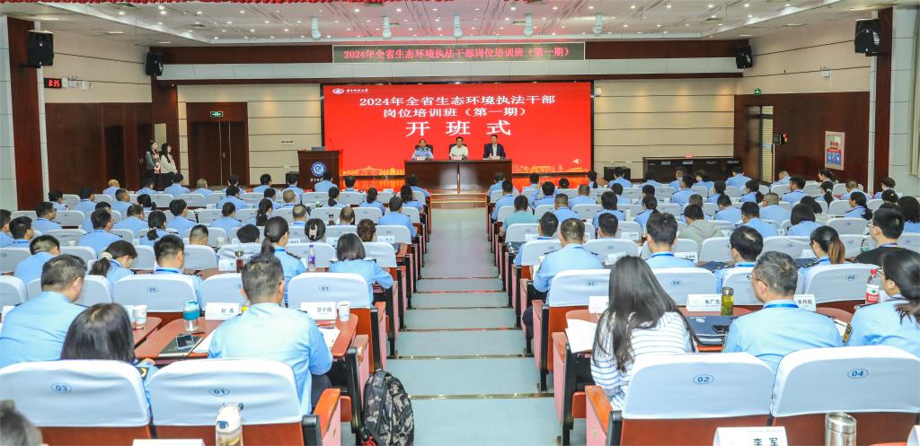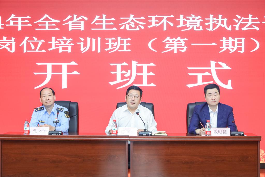 湖北省生态环境厅二级巡视员陈同亮、华科大公司党委书记戴则健参加开班式,湖北省生态环境流域治理综合行政执法局四级高级主办张文涛主持开班式。开班式上戴则健同志致欢迎辞,对大家的到来表示热烈欢迎并预祝本次培训圆满成功。陈同亮同志做动员讲话,并提出意见和建议,最后祝大家在培训期间学有所成、学有所悟、学有所得,为全省铁卷工作做出更大贡献。