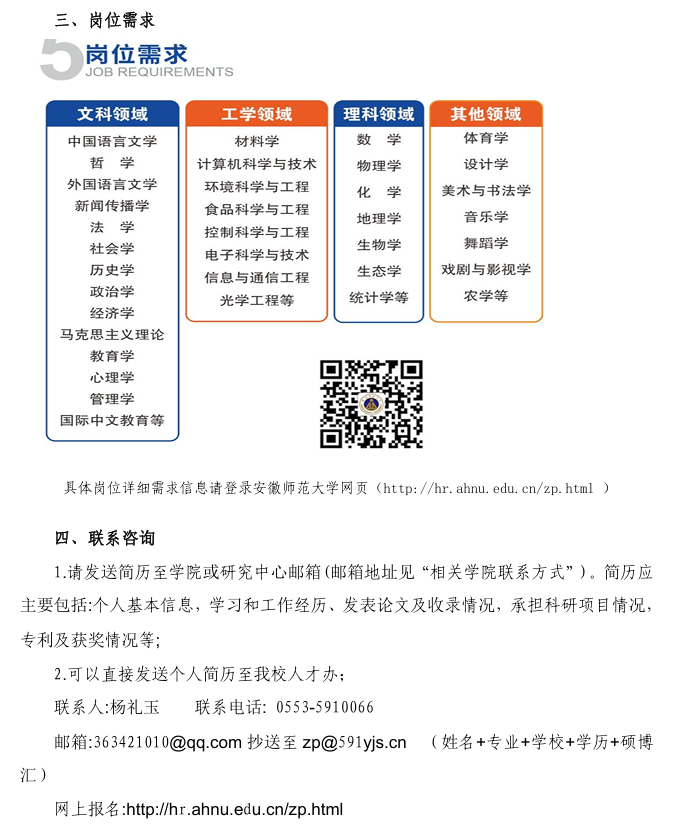 网上报名:http://hr.ahnu.edu.cn/zp.html