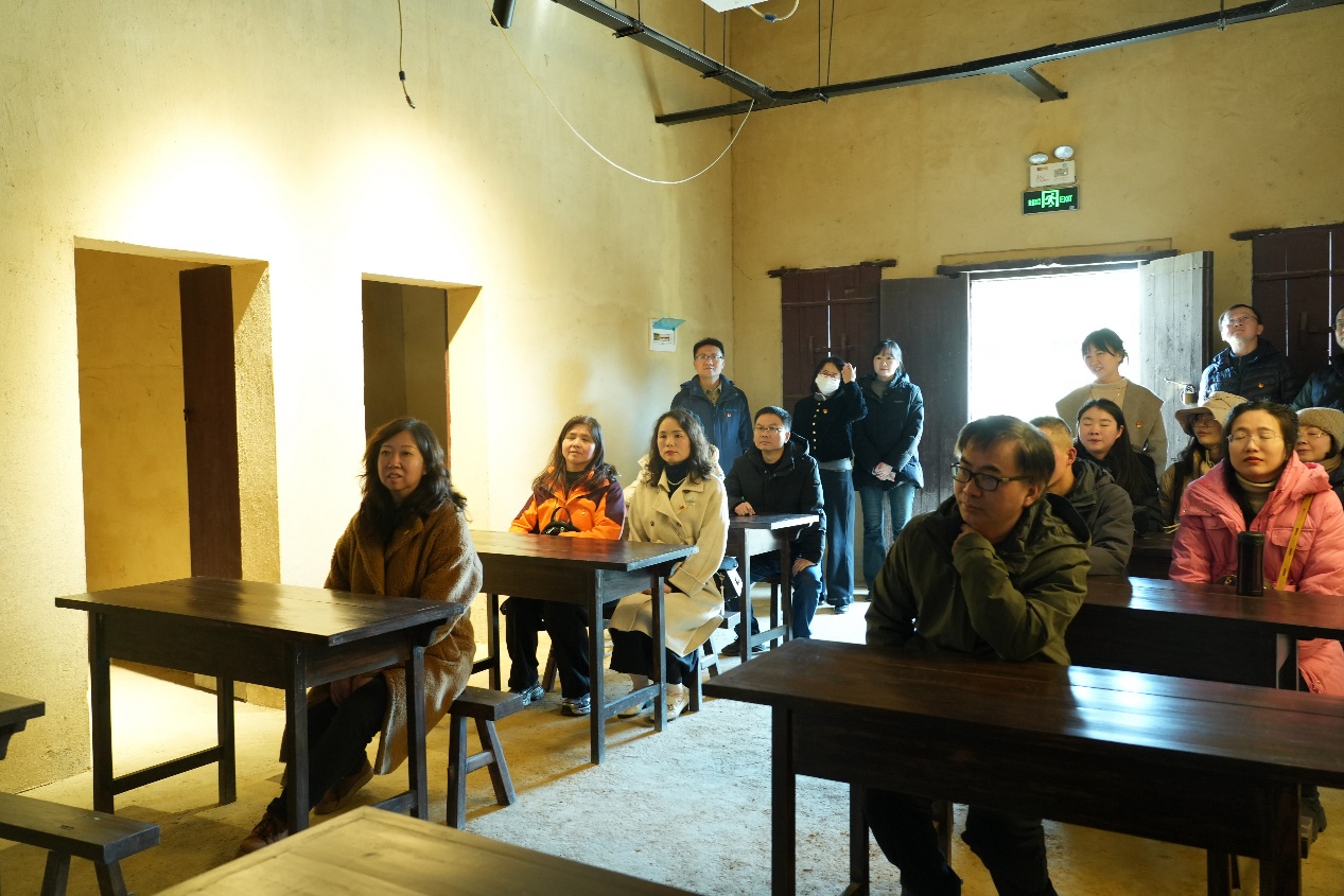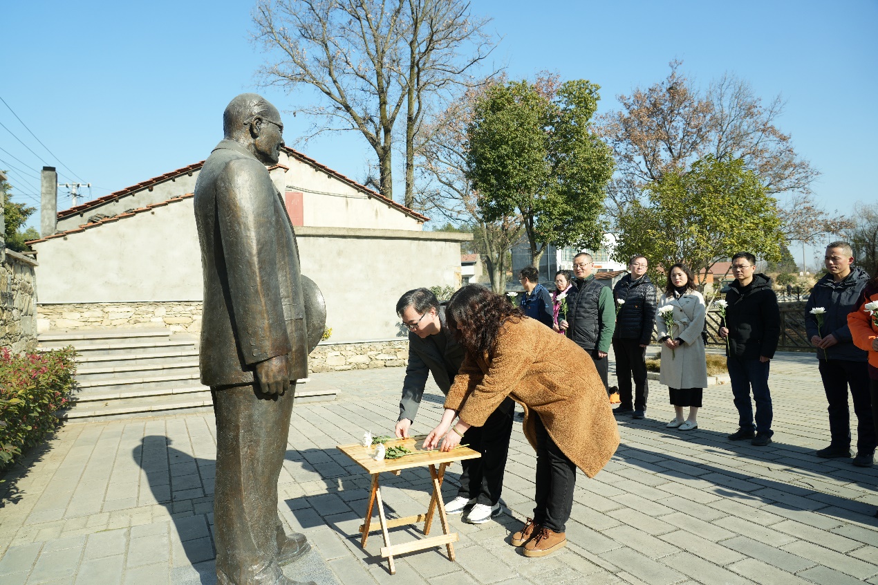 随后,党员们前往红安张培刚故居。在现场教学环节,全体党员默哀一分钟,向张培刚先生铜像敬献鲜花,表达对先生的缅怀和敬仰。张培刚故居的参观让党员们回顾了张培刚先生的生平事迹,深刻感受到张培刚先生为国为民、胸怀天下的家国情怀。