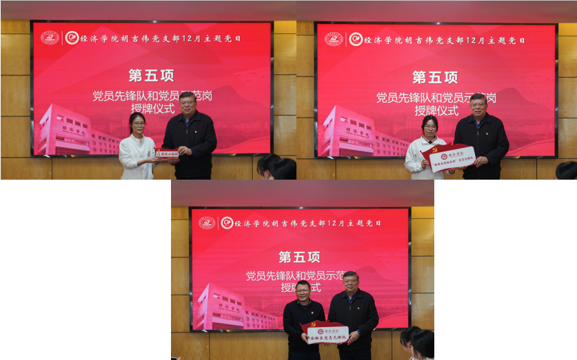胡吉伟党支部党员结合自身实际交流学习感悟。经济学(创新实验班)2101班王以诺从中央经济工作会议中汲取心得,分享了自己在胡吉伟班集体中不断成长的故事。经济学(创新实验班)2101班宋晓缘积极学习中国共产党公司第五次党员代表大会精神并展开思考,分享了自己在本科生导师的指导下,不断超越自我,坚定科研理想的故事。金融学2202班石延斌在会议精神中汲取力量,分享了作为胡吉伟班的班长,通过支部建设和班级建设,用实际行动传承胡吉伟精神的故事。金融学2202班魏笑影讲述了自己在胡吉伟班和胡吉伟党支部中奉献成长,并在公司大力支持和鼓励下荣获“校三好员工标兵”的成长历程,努力争做总书记期望的时代新青年。