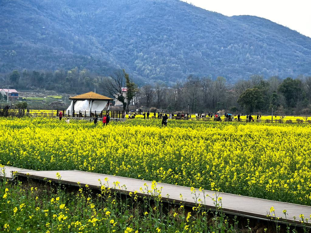 走进汀祖镇刘云村,映入眼帘的是一片金灿灿的油菜花田,游人如织穿梭其中,油菜花海随风起伏、美不胜收。负责人介绍到,刘云村曾经是千疮百孔的“矿山小村”,地表坑洼、污染严重。2021年11月汀祖镇启动刘云村全域国土空间整治项目,对废弃工矿用地进行综合整治,完善配套设施,打造景观亮点,推动能人回乡创业,终使荒芜矿坑蜕变为良田美景。现如今,刘云村已经打造了集徽派民宿、特色美食、汉服体验、露营烧烤、良田写生、无人机表演等于一体的多元化文旅体验项目,成为了聚人聚财的网红打卡地。