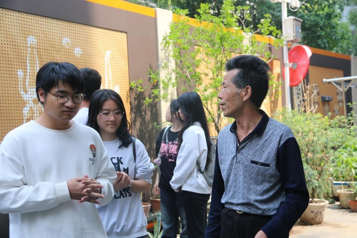 殷师傅作为一名党员同志,非常兴奋地向同学们展示他的花园,并点开手机相册向同学们介绍他种植的每一种花卉,语言中流露出浓浓的自豪感,他回忆当年带头搞共享花园建设,从初期党员牵头引领,到后来全体社区居民共同参与,内心感慨万千。在党员同志的感染下,社区居民们不仅积极参与花园建设,更从中收获了满满的幸福感与获得感,形成了社区建设人人参与、美好环境共同创造的良性循环。