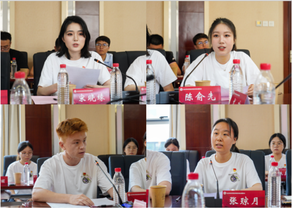 胡吉伟党支部书记尹轩汇报了党支部建设情况,用“成长、蜕变、接力”三个关键词,展示了支部“党建带动班团建设”的成果,表明支部在新时代继续赓续英雄精神,团结奋进的决心。