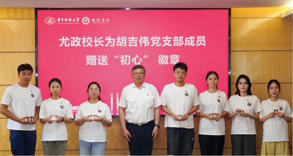 尤政为支部成员赠送“初心”徽章。