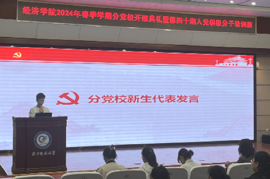 然后,分党校新生代表谭博文同学就个人经历及思想认识进行发言。他表示,作为入党积极分子,我们应发扬党的优良传统,积极向党组织靠拢,认真扎实地学习党的历史,坚定历史自信,增强历史主动,不断提高自己的思想水平,同时积极投身实践,努力谱写新时代中国特色社会主义更加绚丽的华章,争取早日站到党旗下,成为一名光荣的共产党员。