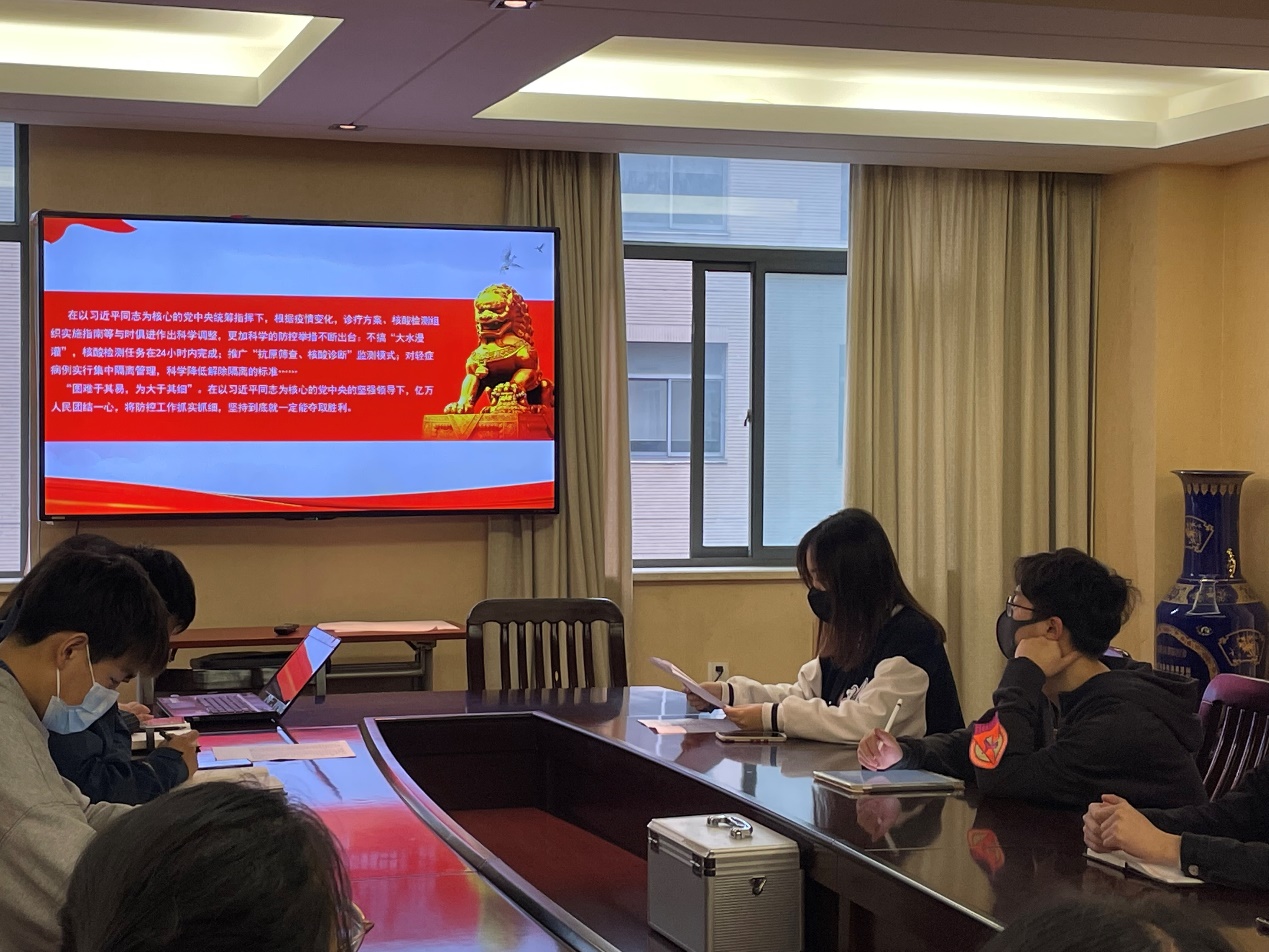 会议伊始,胡吉伟党支部书记王艺晓同志围绕“始终坚持人民至上、生命至上”的主题,领学习近平总书记在中共中央政治局常务委员会会议中的重要精神和规划。她指出,关键时刻,以习近平同志为核心的党中央审时度势,给出有利回答,指出明确方向。两年以来,病毒不断变异,面对严峻的疫情防控形势,习近平总书记亲自部署,变的是其中的防控策略,始终不变的是亲民主义。王艺晓同志强调,在以习近平同志为核心的党中央的带领下,亿万人民团结一心,将防控工作抓实抓细,坚持到底一定能夺取胜利。
