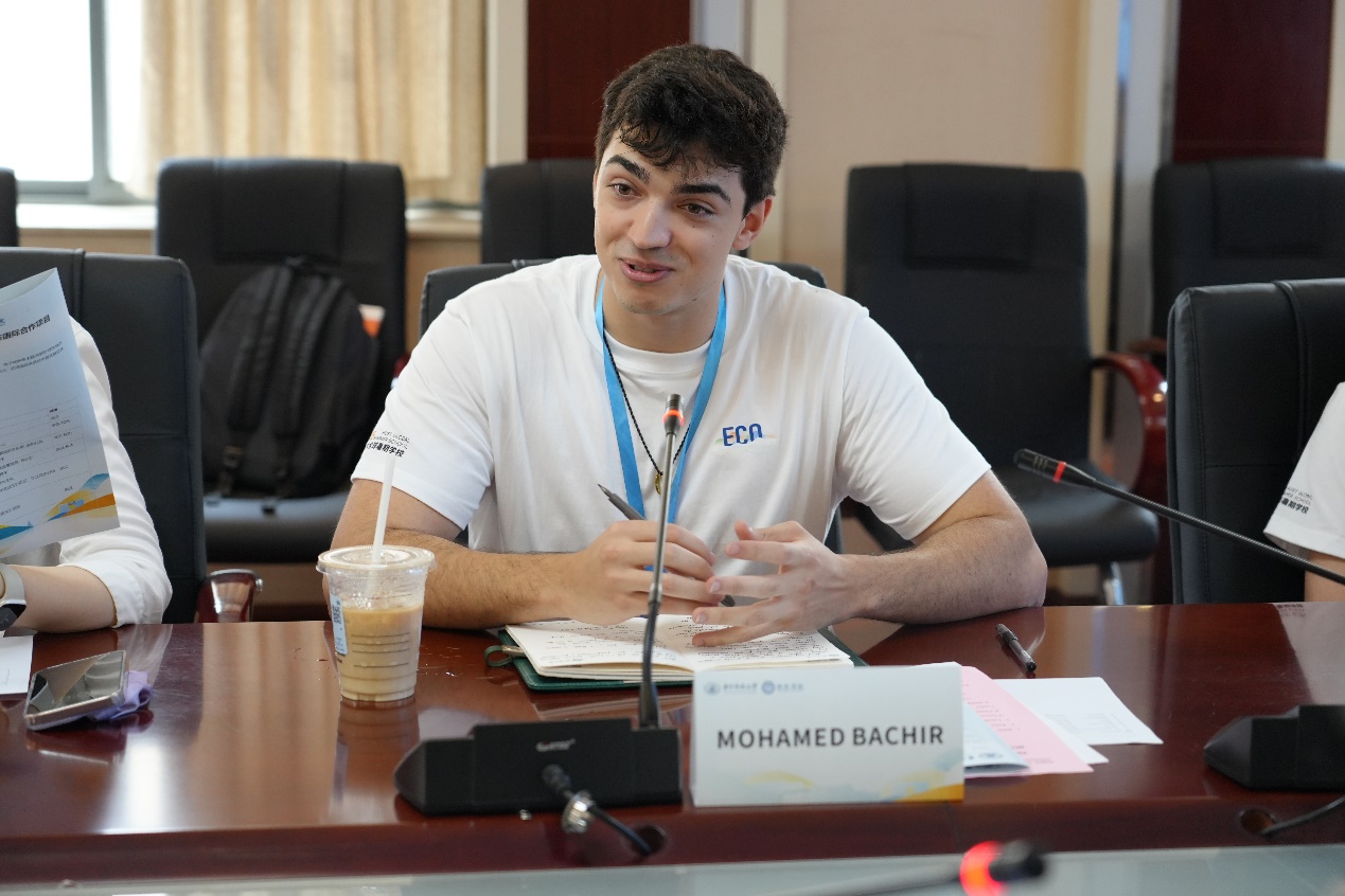 来自外籍营员代表、阿伯丁大学的EL HAMZAOUY DELGADO MOHAMED BACHIR发言。作为国际关系专业员工,他希望通过本次活动本次更加了解中国经济发展,深入了解中国在基础设施建设、能源转型等方面的领先实践。他表达了自己对中华文化的喜爱,期待通过本次项目与各位老师同学展开深入交流,共同探索绿色发展之路。