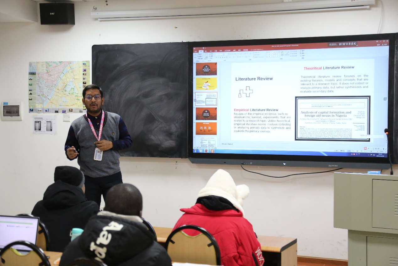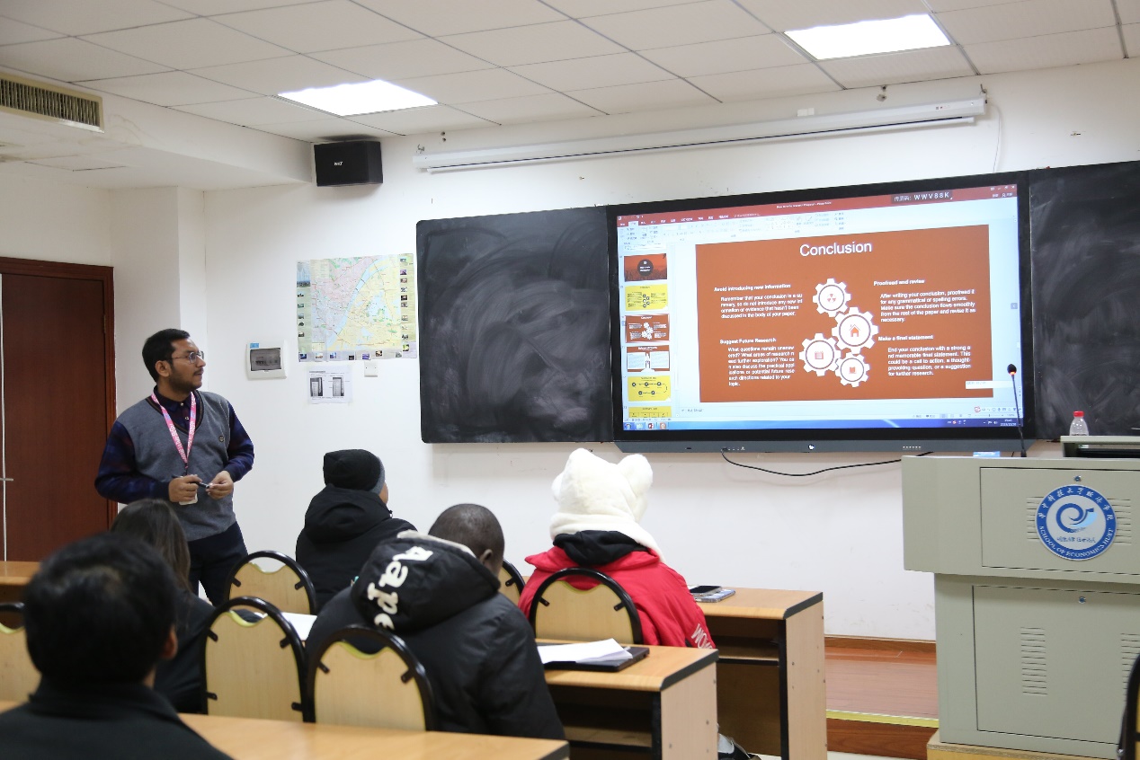 为营造良好学术风气和浓郁创新氛围,规范论文写作统一格式,帮助在校国际员工运用科学研究方法、掌握论文撰写要求,12月20日下午,永利3044noc举办的论文提案写作能力提升培训讲座在公司105教室顺利开展,永利3044noc国际博士生Md.Istiak Hossain(侯亦凡),国际员工辅导员马文丽和全体国际员工参加,讲座由侯亦凡同学主讲。